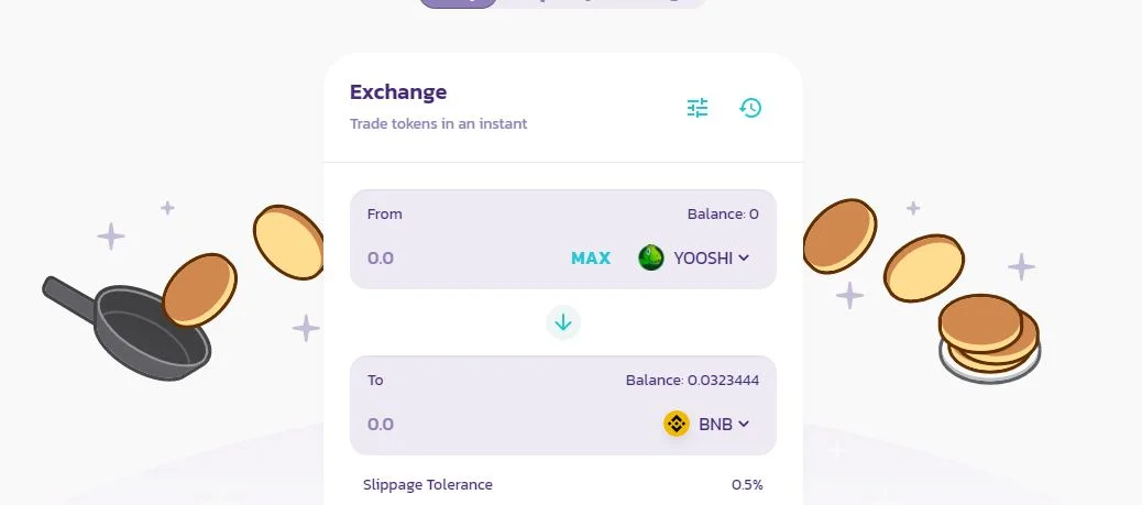 Bevor Sie auf „Tauschen“ klicken, müssen Sie in den Einstellungen die Rutschtoleranz auf 11 oder 12% einstellen, da es eine 10%ige Kommission hat; wobei 5% verbrannt werden und die anderen 5% unter den Leuten verteilt werden, die YooShi in ihrer Brieftasche haben, und zwar auf eine völlig passive Weise.