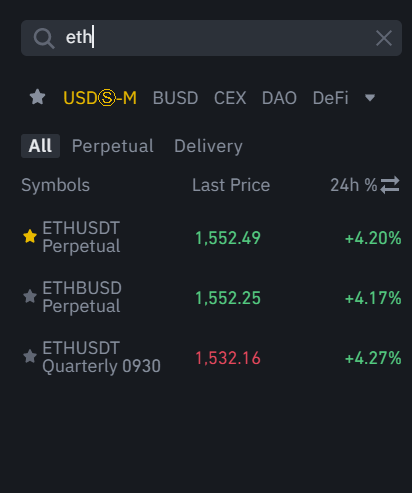 La trading grid o cuadricula de futuros, va vinculada a una criptomoneda. Si no has cambiado nada, te aparecerá en la criptomoneda de bitcoin. Lo primero que debemos hacer es elegir la criptomoneda que quieras usar la trading grid. Ve al buscador, busca el nombre, para este ejemplo voy a coger cardano, ada, y pulsa en la criptomoneda que quieres operar.